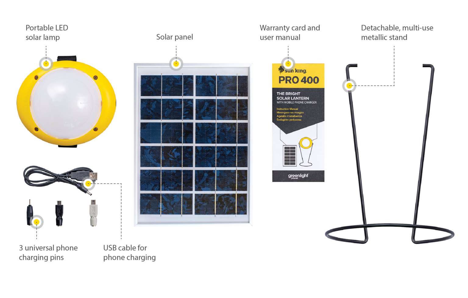 The Sun King Pro 400 is the brightest solar lantern in the Pro range, easily capable of lighting up your space. It can provide light for up to 100 hours with its durable, long-lasting battery. It’s an effective solution for your lighting and charging needs, whether you’re studying, cooking, or working at night.